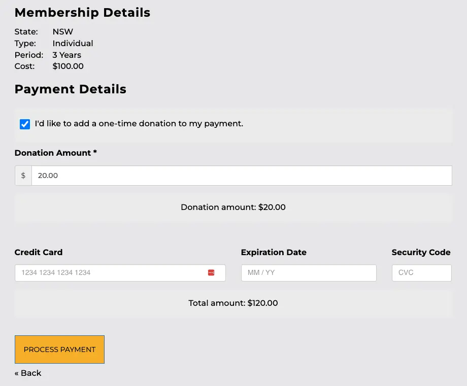If a user selects a payment period of 1 Year or 3 Years - they will have an option to add an additional one-time donation on-top of their membership fees.