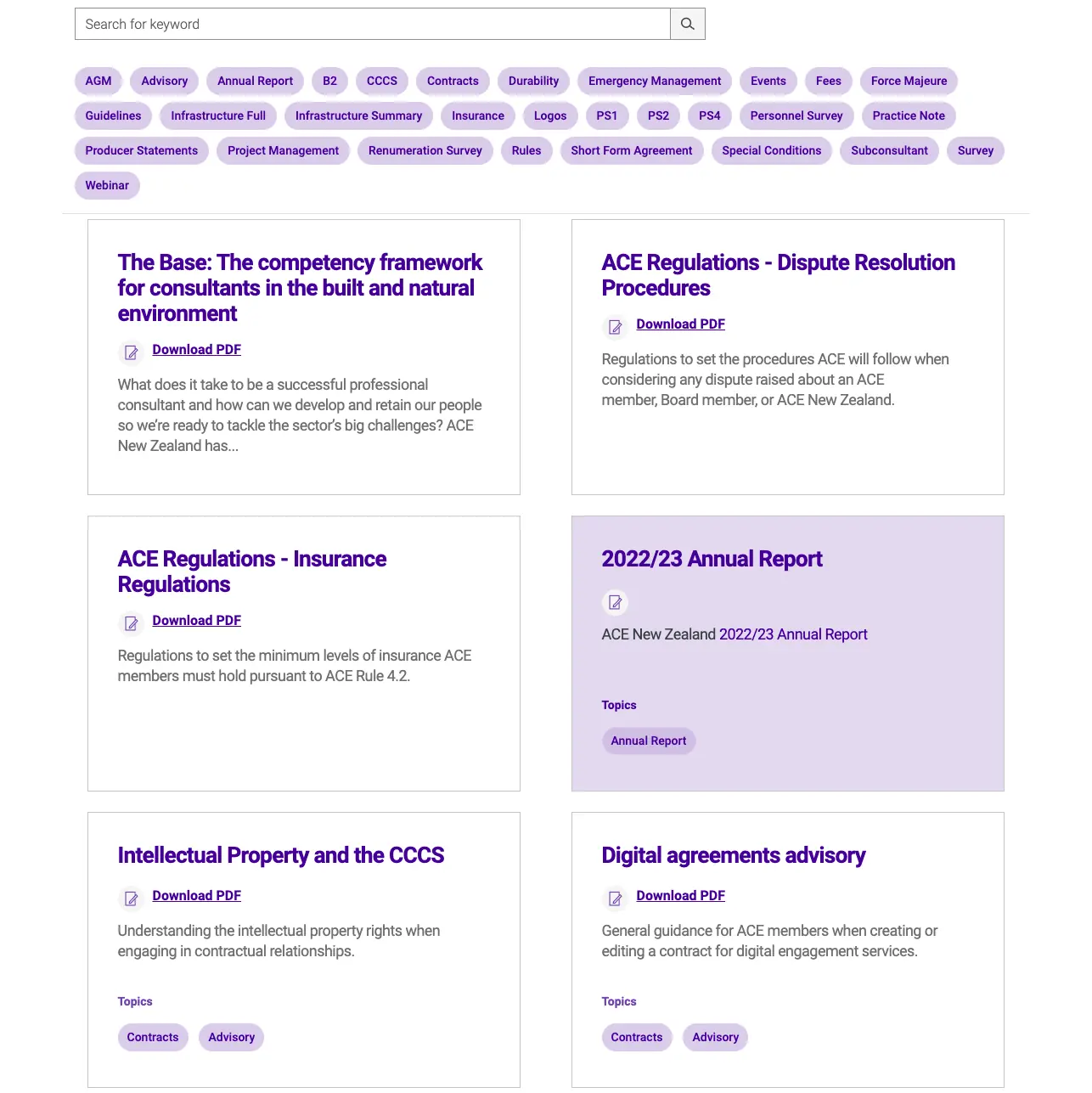 Activated via tag module_card_grid - this module creates a grid of cards for each published basic resource page. There is also a data tag module_card_grid:resources-data which pulls in data from the page tagged insights-data. It currently uses this data tag as the insights posts are not child of dev_insights - but of the live insights page. There is a keyword search which lets users type to filter down results, and you also have the ability to add filter tags by tagging an individual resource filter:XXX where XXX is the name of the filter.
