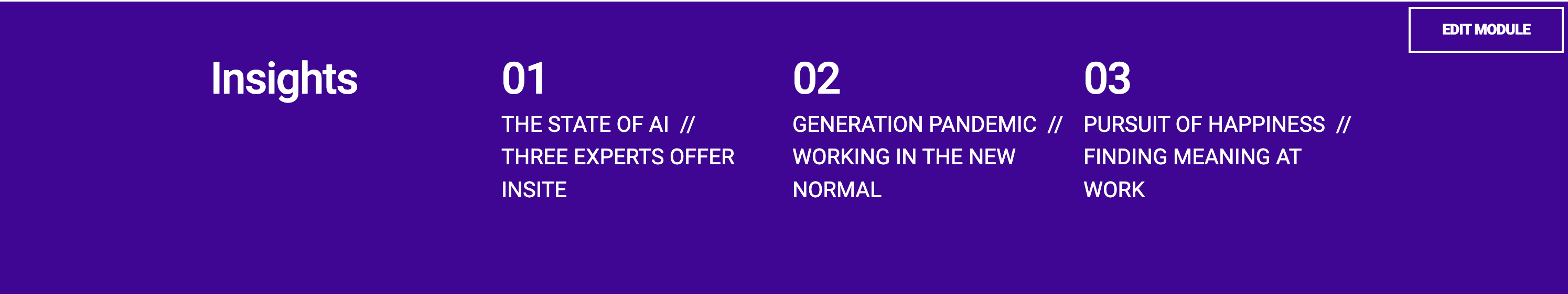 The basic subpage module has tag "layout:insights" and it has 3 nested pages underneath.