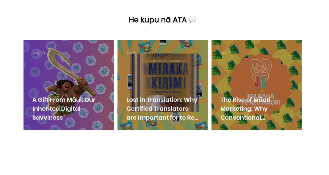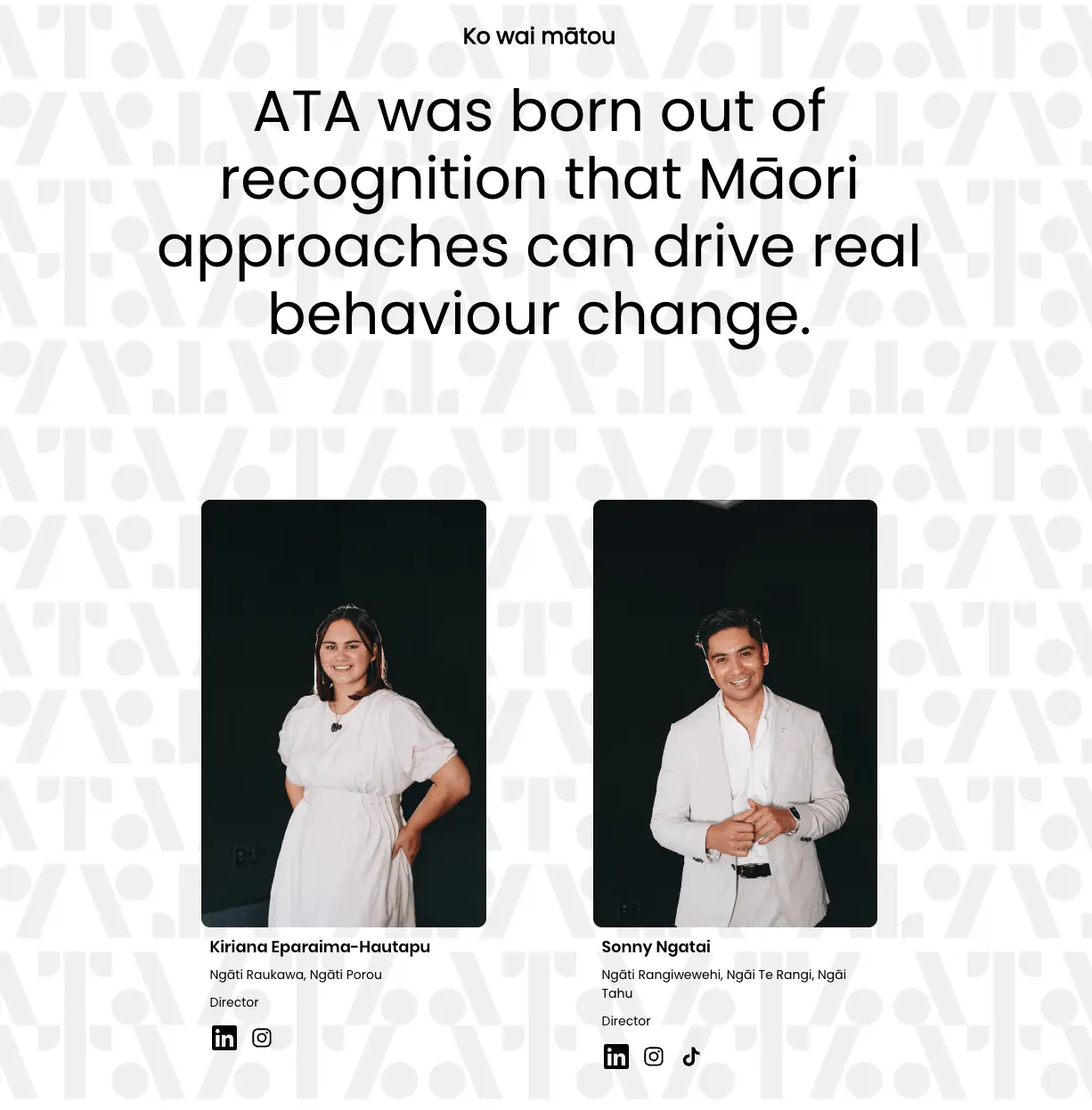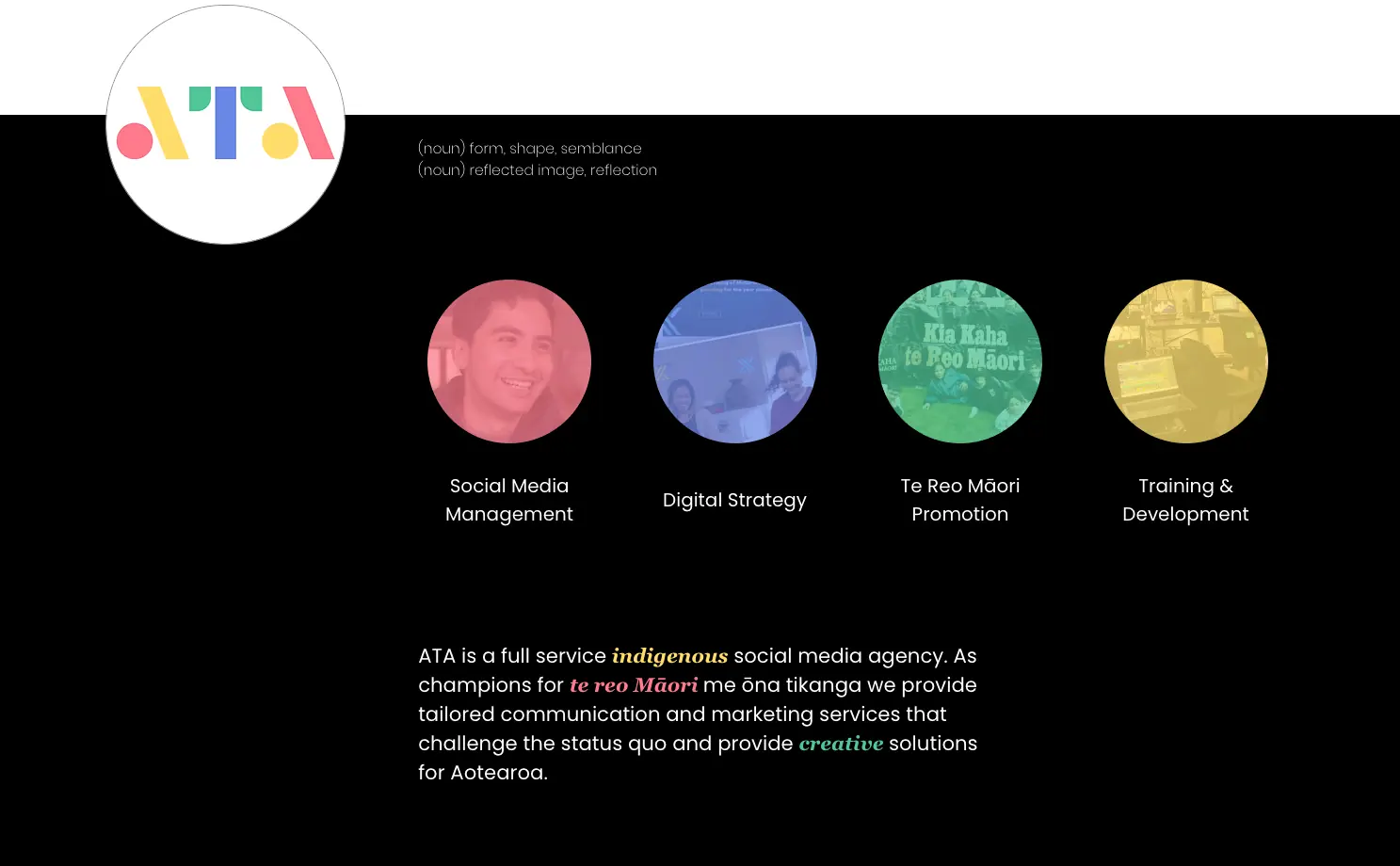 This section just contains the main page header "IDEAS SHAPED BY TE REO" and then the small "ATA" sitting above the Top Black section.