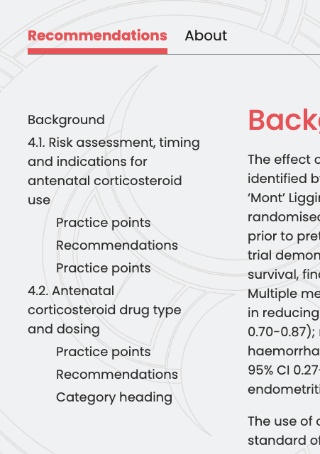 - Visit the live page. On the left of the relevant page there is menu that contains the links to the sections on the page.