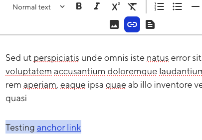 In your document text, select the text you wish to turn into a link and click the link icon: