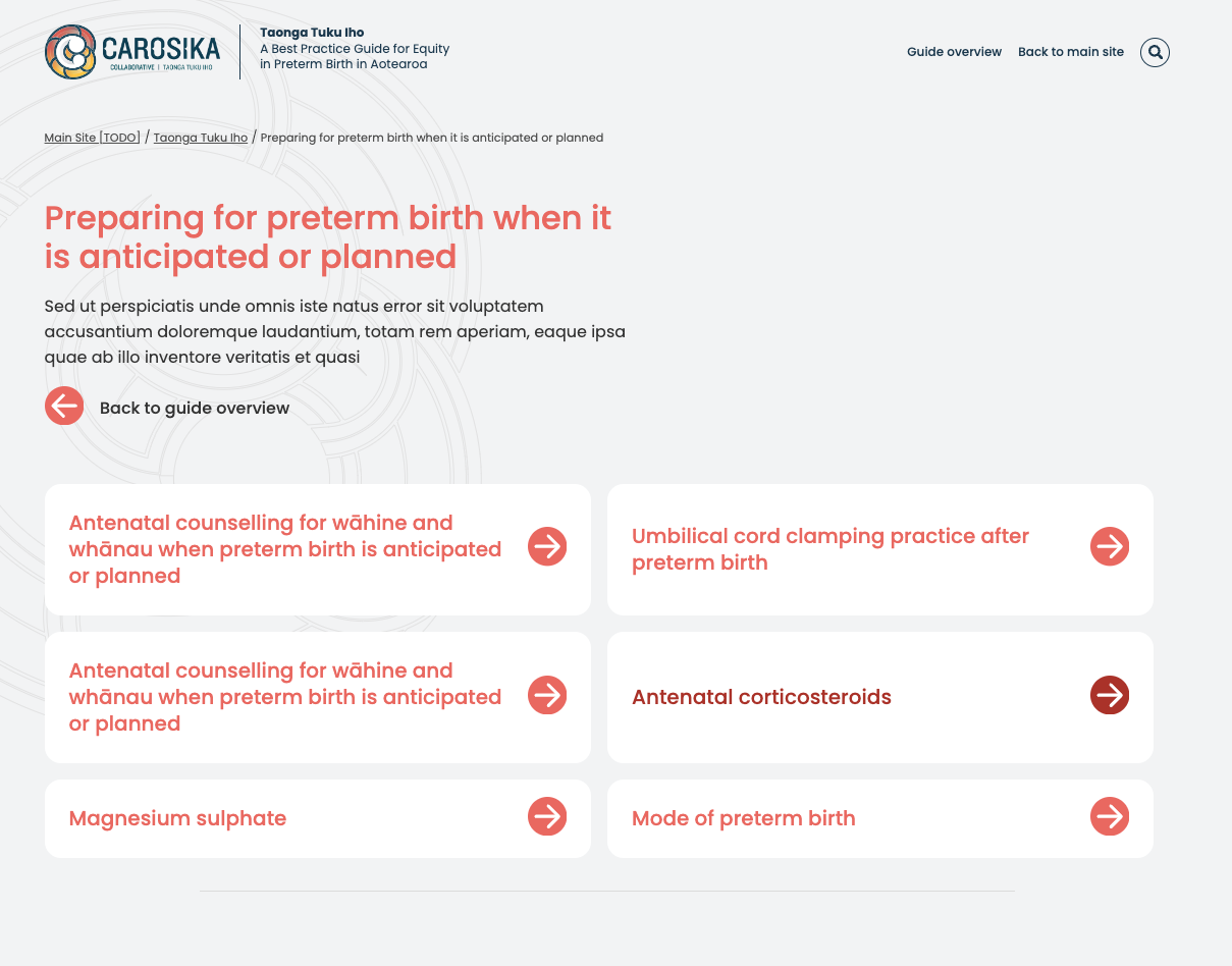 Each Chapter Introduction page has a title, chapter introduction, and shows each subchapter as a card. Clicking on a subchapter card takes the user to the relevant Subchapter page.