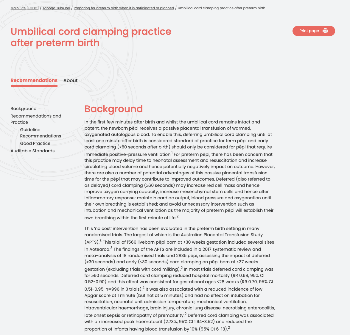Each Subchapter page has an title, optional introduction, and usually two panels (displayed as clickable tabs) - a Recommendations panel and an About panel.