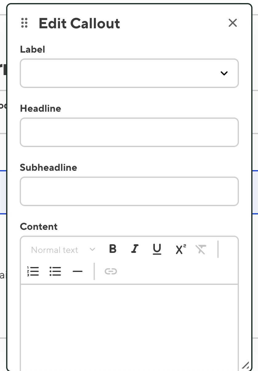The Callout snippet creates a coloured box (red, yellow or blue) with additional content, for example: