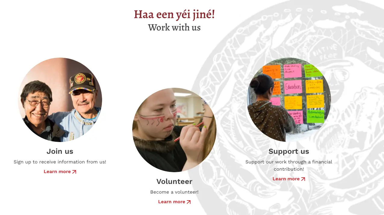 Various pages and modules throughout the website will feature bilingual headlines - where an Alaskan phrase is shown in red and then the English translation is underneath.