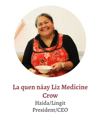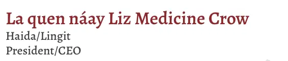 The module headline here is "La quen náay Liz Medicine Crow | Haida/Lingit | President/CEO".