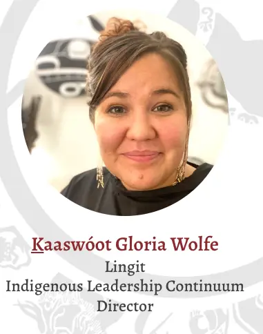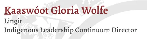 The module headline here is "_K_aaswóot Gloria Wolfe | Lingit | Indigenous Leadership Continuum Director".