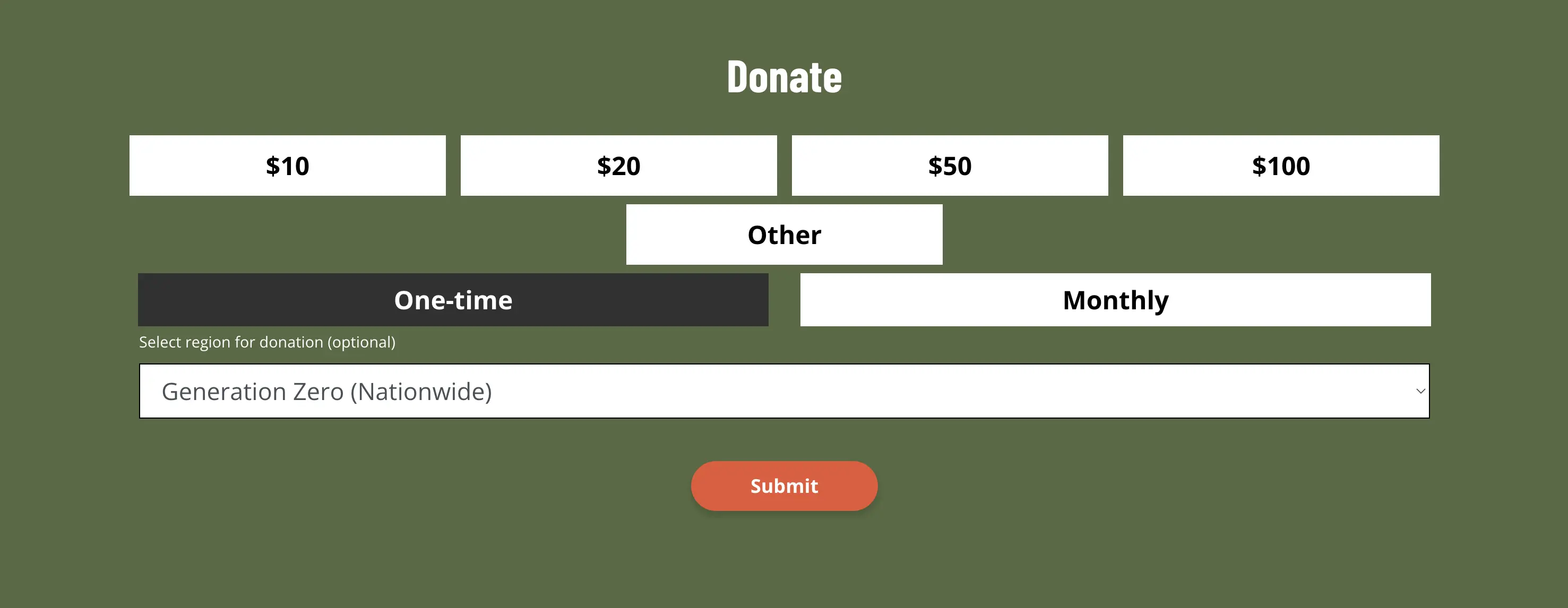 We have special logic here with the region selector - where we have added a dropdown where the user can select a specific region to donate to. If they don't change this, they will be taken to the nationwide donation page.