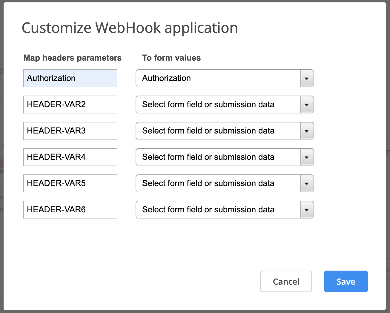 Authorization. (it is important this field is exact - note the capital "A" and the American "z"). - In the dropdown, select the Authorization form field you created previously.