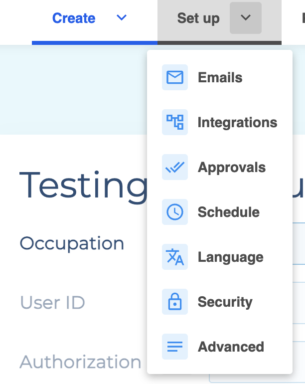 - Select the "Setup" menu, then select "Integrations" in the dropdown.