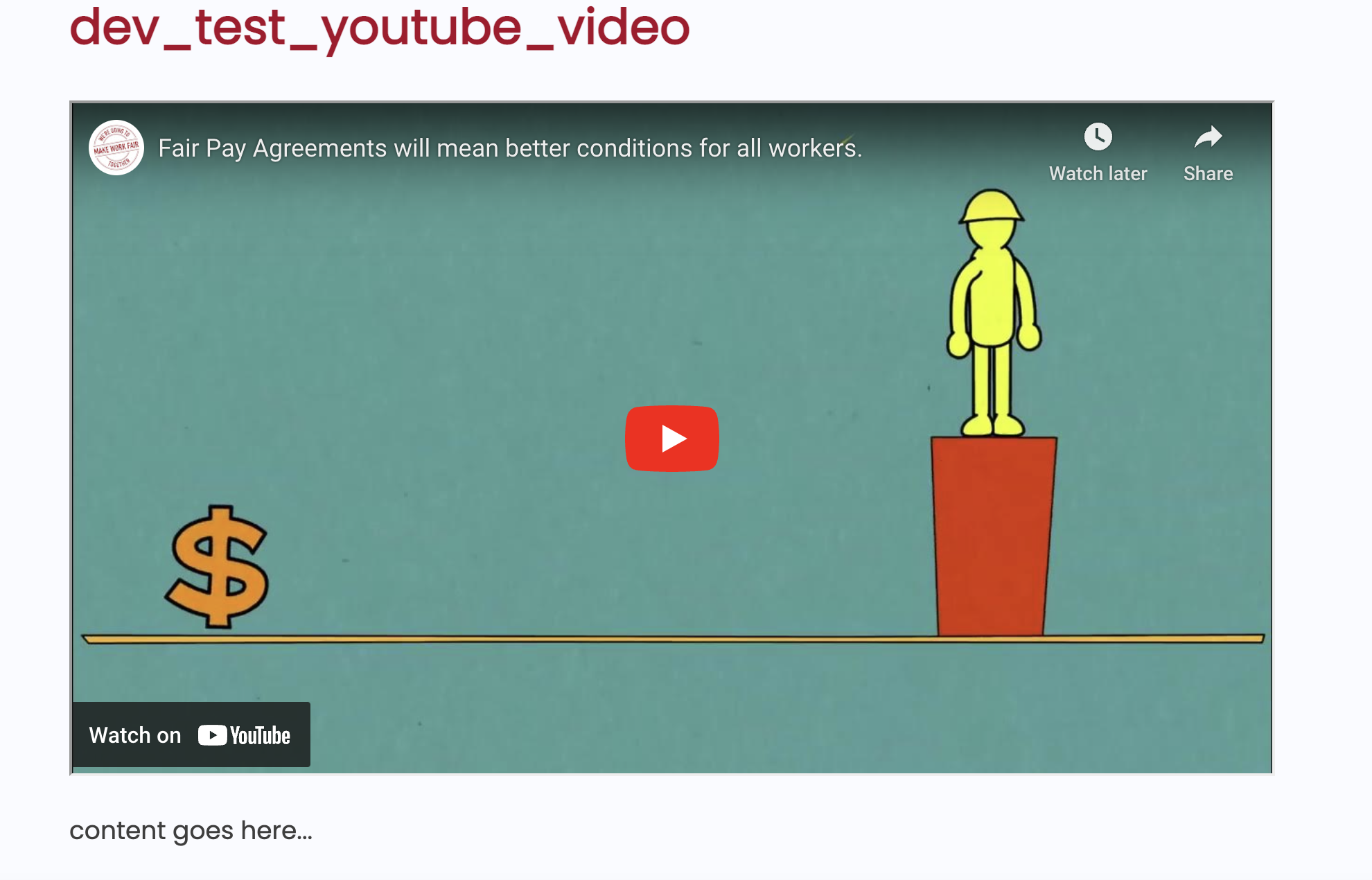 You can put the Youtube ID in the page excerpt to embed it in the page - it will be in a container width.