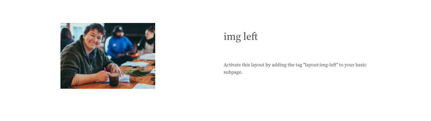 This basic content layout can be activated by applying the tag layout:img-left to a published basic subpage.