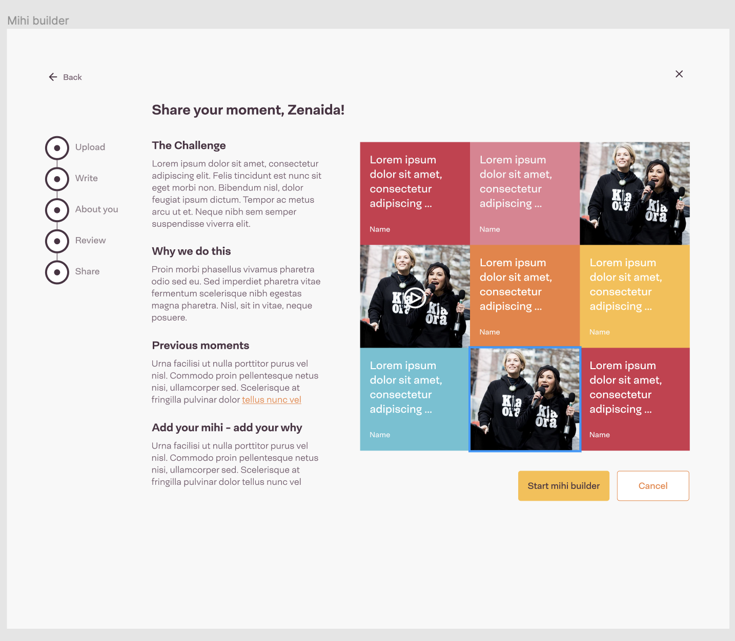 The Share Flow pages collect user stories/submissions in a form, which is shown over series of steps (also known as a 'wizard').