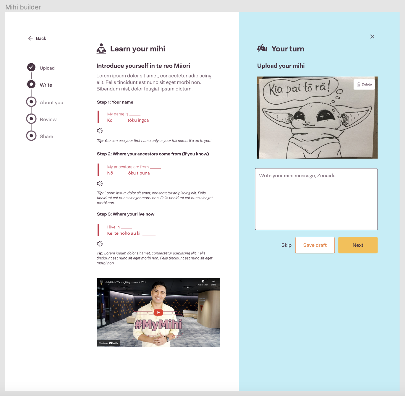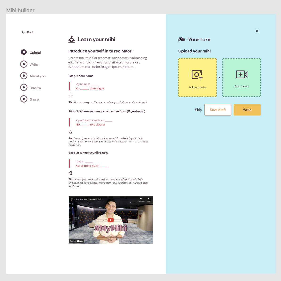 - Users can learn and submit their mihi.