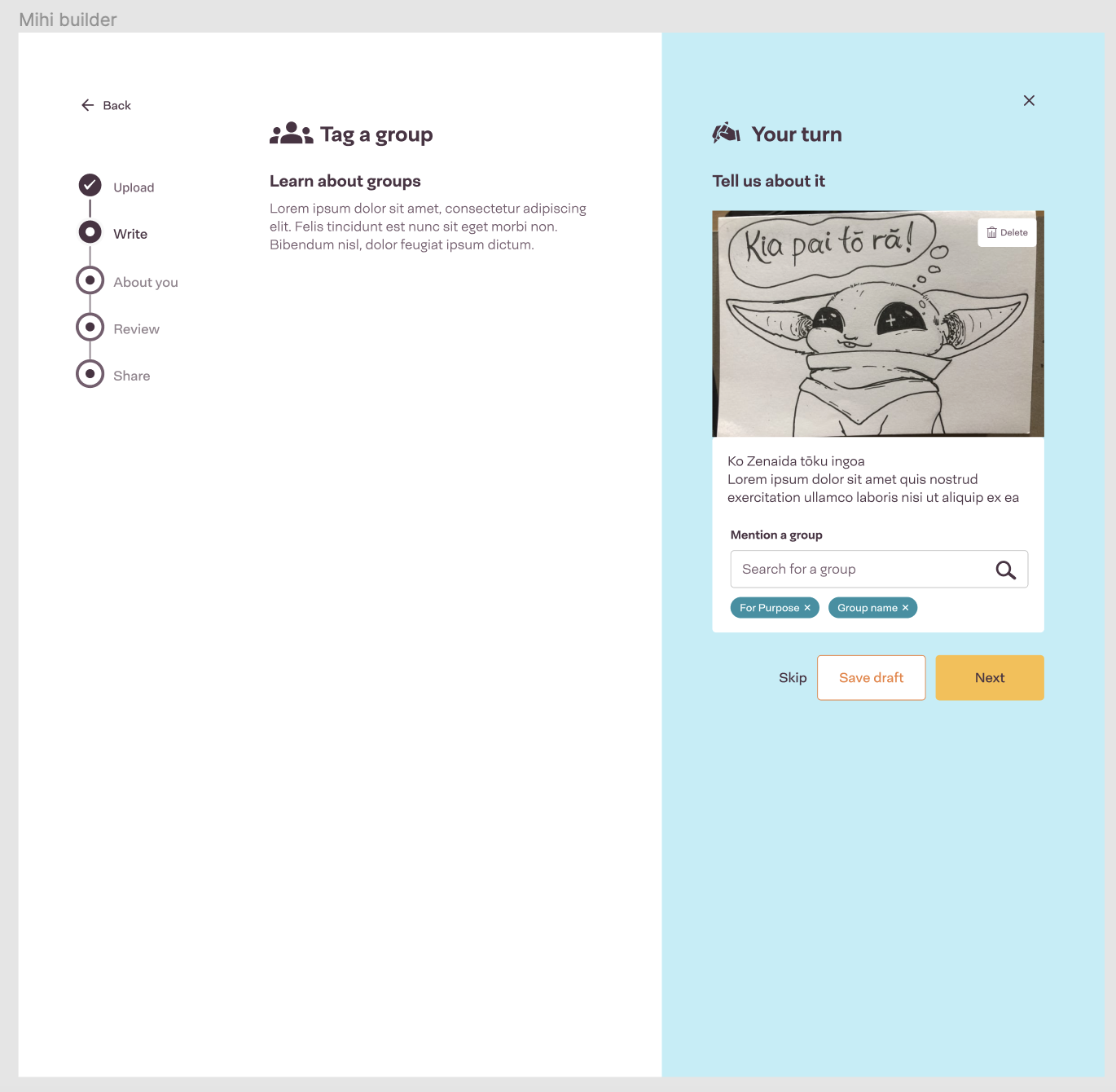 "Skip" and "Write" are both "next" buttons