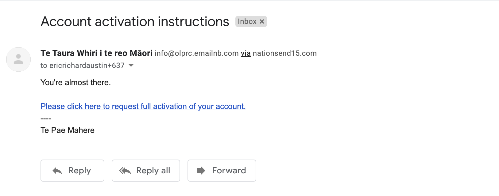 Users will be sent an activation email immediately from the system, see image below. Note that we can customise this. Users can click the link in the email to go back to the site and finish their account activation.