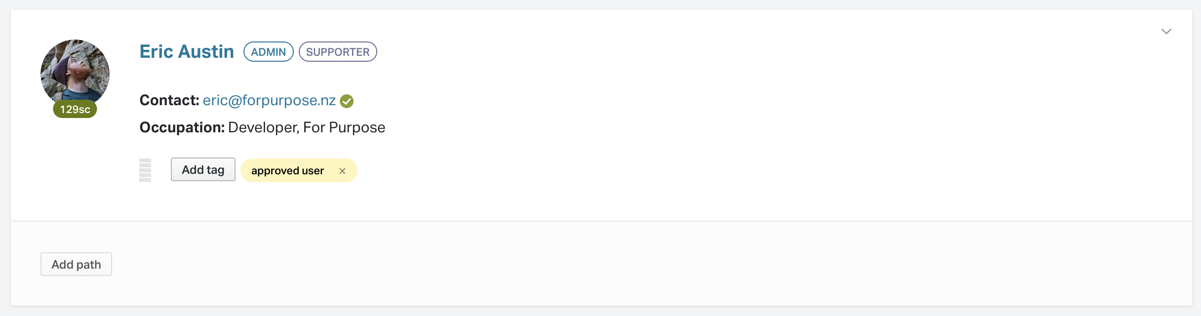 To approve the user they can click the "Add tag" button, then type out the tag name "approved user" and Save.
