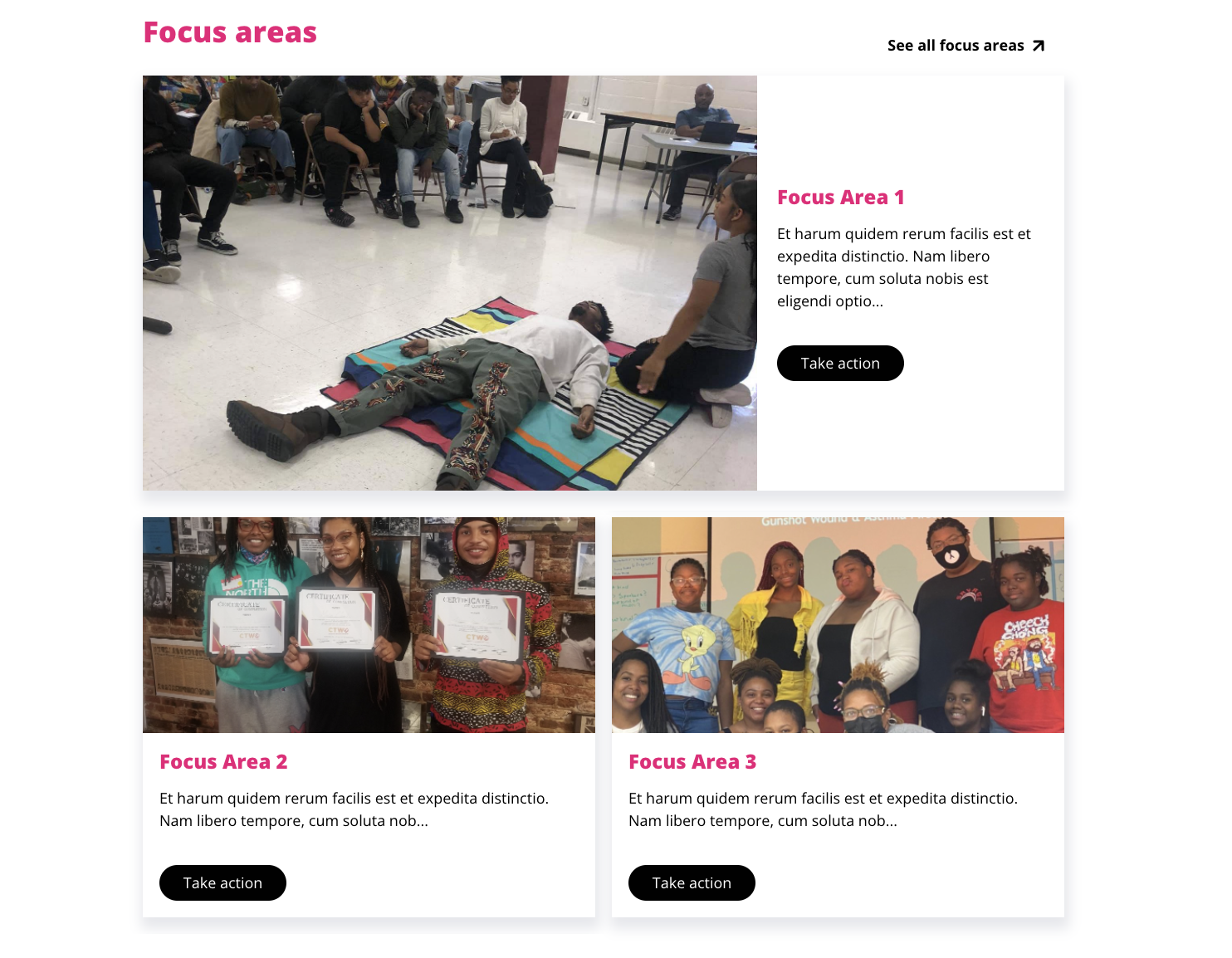 This module has one “hero” and two “featured” posts. Tag the hero page hero_campaign and tag the feature pages featured_campaign